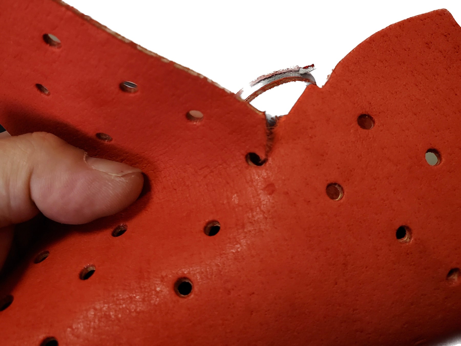 牛革の2/3の軽さを活かして革の厚みや芯材の量を変えずに軽量化に成功。