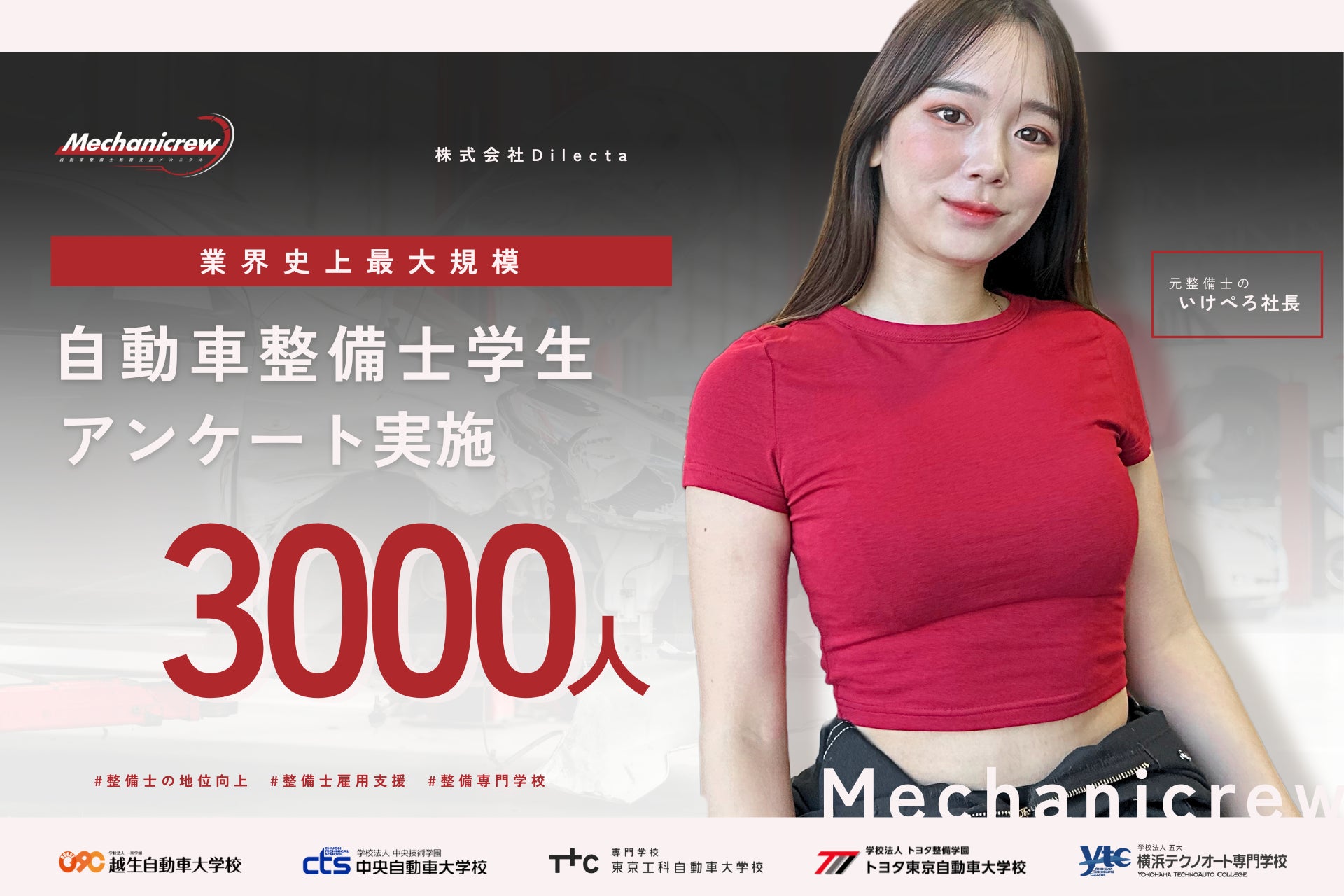 本調査は、整備士志望の若者たちの声を直接拾い上げ、整備業界の未来をより良いものにしていくことを目的として実施したもので、関東圏の計5校・約3,000名の学生から回答を得ています。