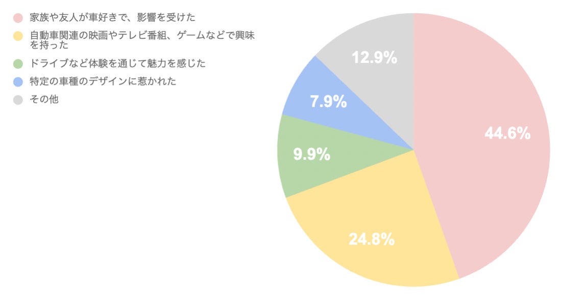 調査結果からは、「自動車に興味を持ったきっかけ」として「家族や友人が車好きで、その影響を受けた」が最も多く挙げられました。一方で、「企業に求めるもの」としては「職場環境」が最多となり、「長時間労働への懸念」や「人間関係への不安」など、現場に根付く課題に対する問題意識が浮き彫りとなりました。