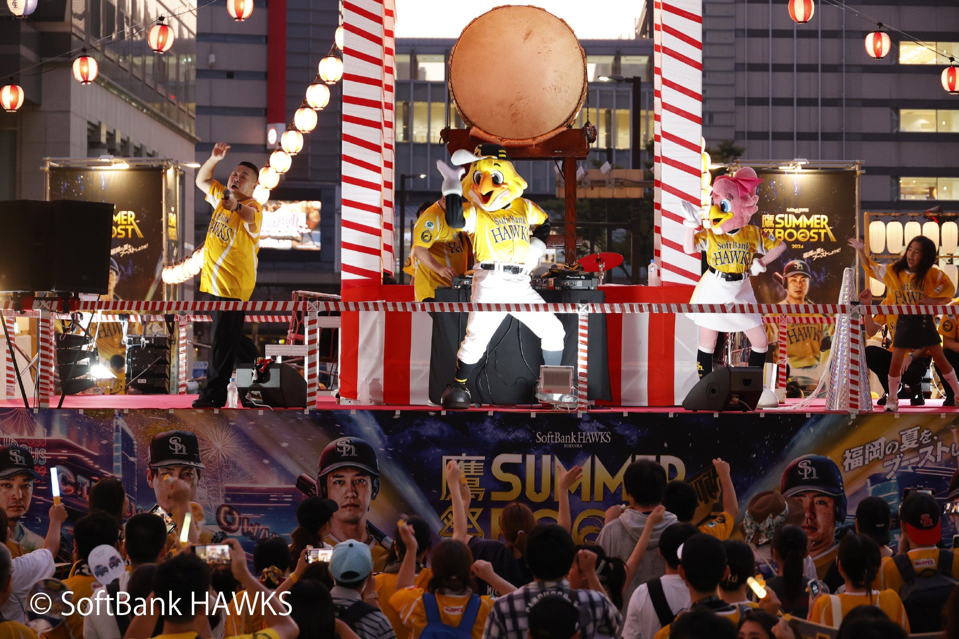 8月3日(日)の鷹祭 SUMMER BOOST最終日のドームの熱気をそのまま街中へ。福岡県出身の原口あきまささん、家入レオさんら豪華ゲストも登場してホークスファンと福岡の街が一体となって盛り上がり、鷹祭 SUMMER BOOSTを締めくくります。