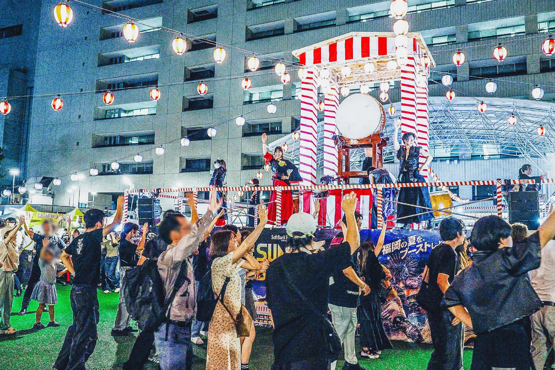 “どこか懐かしくて新しい夏祭りを天神の真ん中で。”というコンセプトのもと、盆踊りや屋台、縁日など昔ながらの夏まつりを福岡市役所西側ふれあい広場で開催し、老若男女問わず童心に戻り福岡の夏を楽しむことができるイベントです。