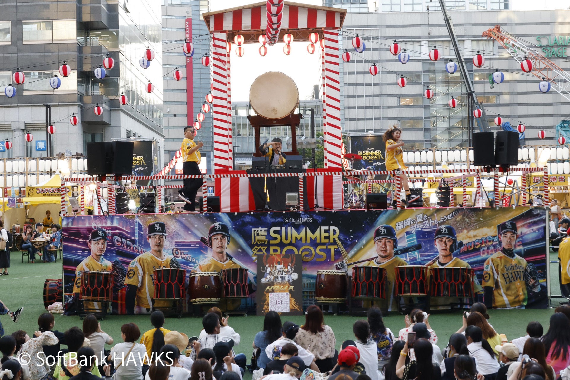 昨年、鷹の祭典から進化した「鷹祭 SUMMER BOOST」は、野球イベントの枠を超え、福岡の街の皆さんと共に福岡の夏を盛り上げたいとの思いで、ドームを飛び出し街中でイベントを開催。伝統と新しさを融合した「天神夏まつり」のコンセプトに共感しコラボレーションに至りました。さらに福岡の夏を熱くするべく、今年も天神夏まつりとタッグを組みます。パワーアップした「鷹祭 SUMMER BOOST meets 天神夏まつり」を通して、参加者の皆さまが忘れられない思い出を作れるよう、夏まつりならではの刺激と体験を提供してまいります。