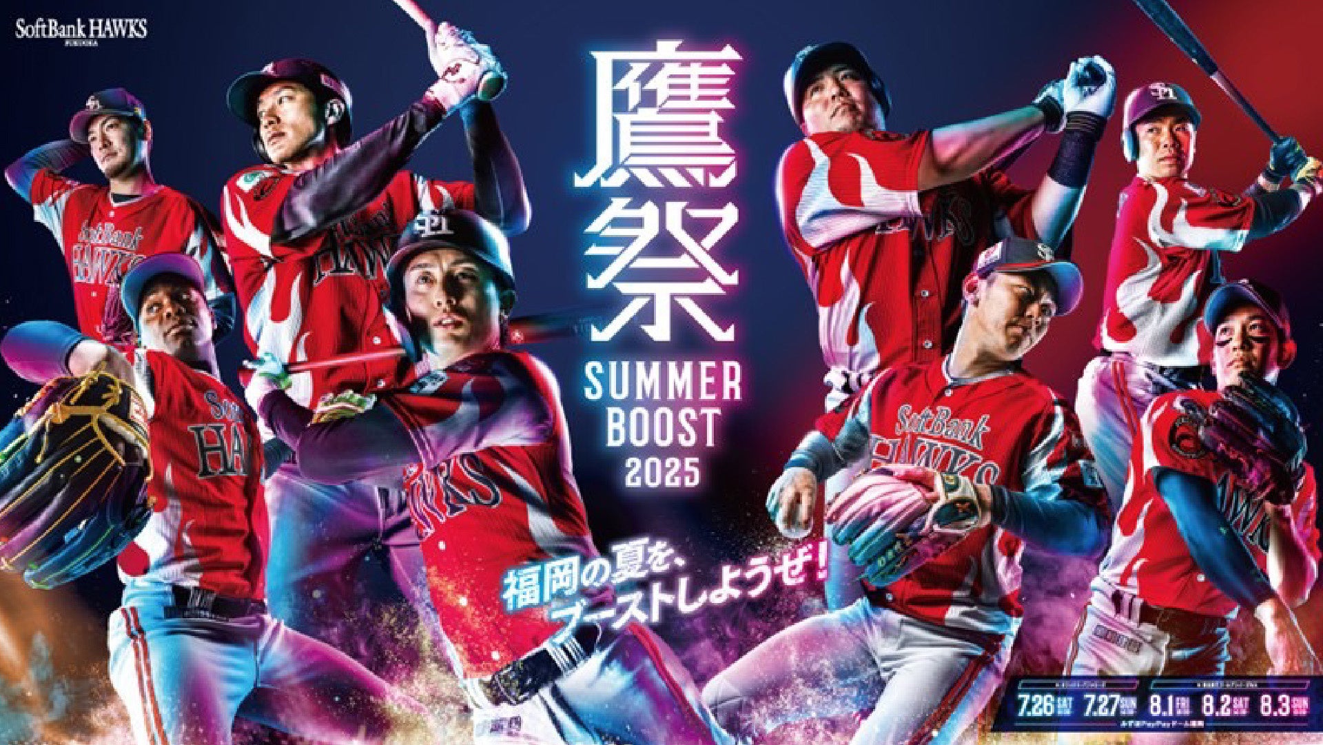 天神まちづくり共同事業体(主催:天神夏まつり2025実⾏委員会(詳細は下記)、事務局:株式会社サエキジャパン/本社・福岡市中央区清川、代表取締役社長・佐伯岳大)は、7月17日(木)~8月17日(日)に福岡市役所西側ふれあい広場で開催される「鷹祭 SUMMER BOOST meets 天神夏まつり 2025」を福岡ソフトバンクホークス株式会社(本社:福岡県福岡市 代表取締役社長CEO:後藤芳光)と今年もタッグを組み一緒に福岡の夏を盛り上げていくこととなりましたので、お知らせします。