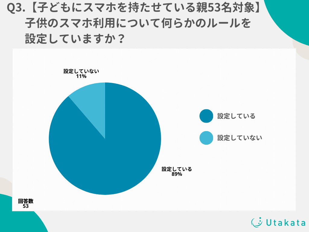 スマホを子どもに持たせている親の89%がスマホ利用に関する何らかのルールを設定している