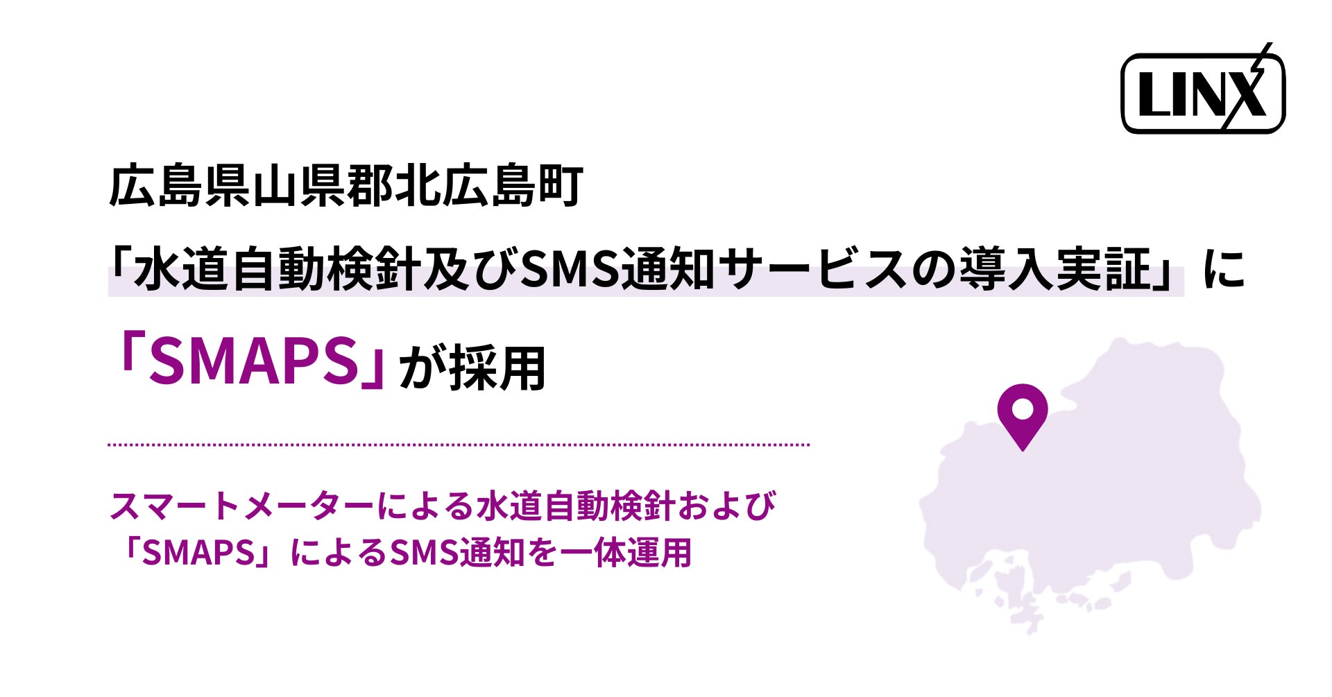 株式会社リンクス(本社:東京都千代田区、代表取締役:野田 貴)が提供する多機能SMS送信サービス「SMAPS(スマップス)」が、広島県山県郡北広島町にて実施される水道自動検針及びSMS通知サービスの実証プロジェクトに採用されました。本実証は株式会社水みらい広島が実施主体となり、2025年度下期より開始されます。