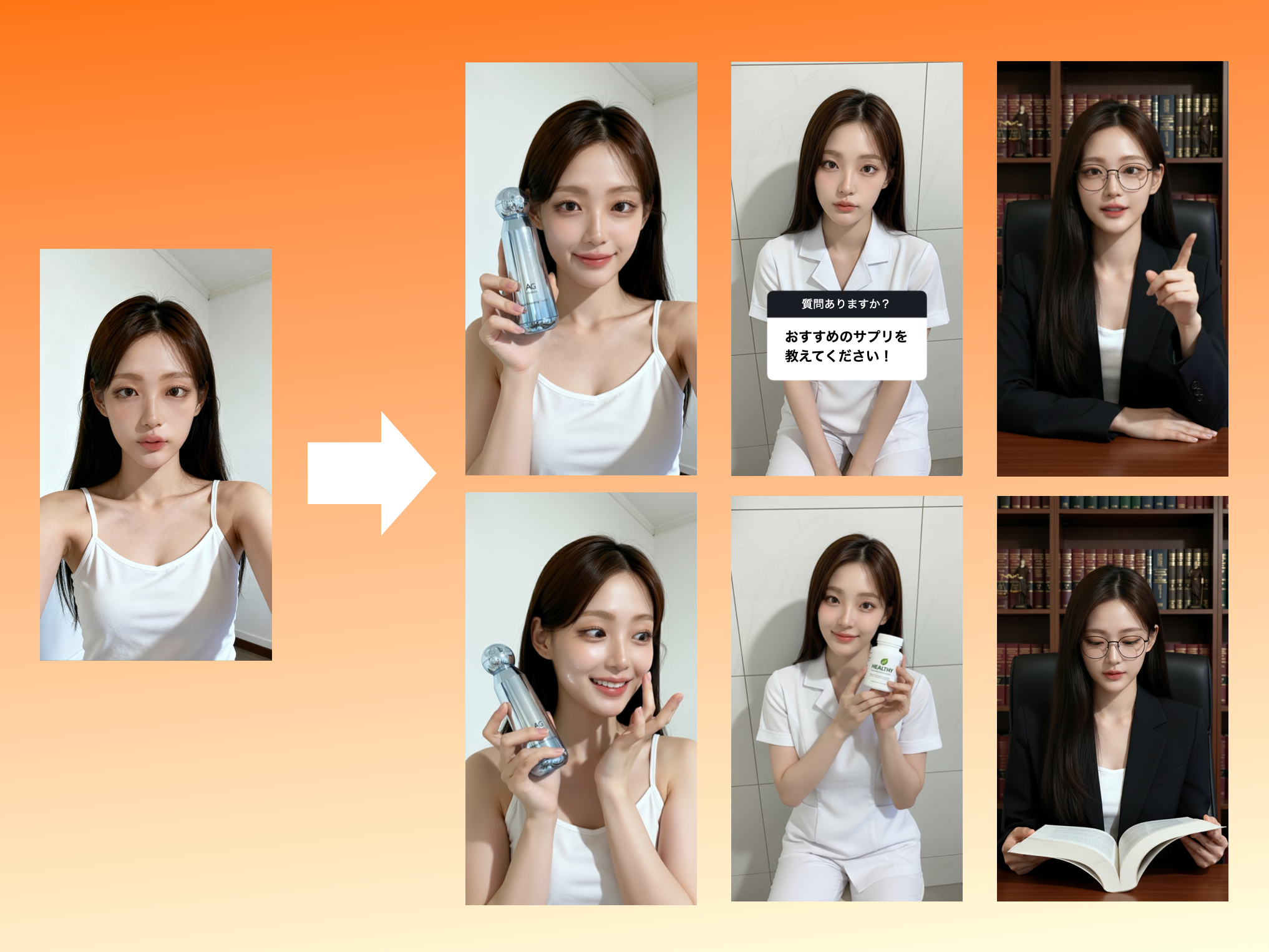 AIキャストが語り手となる革新的な広告制作サービス 「キャストAI for AD」は、AIキャストが広告の語り手として登場する、次世代の動画広告制作サービスです。 従来の広告制作では、モデル手配やスタジオ撮影が必要で、制作期間も長く、コストも高額になりがち。しかし、このサービスでは、撮影やキャスティングが一切不要。1本あたり1万5千円、最短3営業日で動画広告が完成します。 これにより、広告を高効率/高クオリティ/高速で実行でき、効果的な広告運用が実現します。