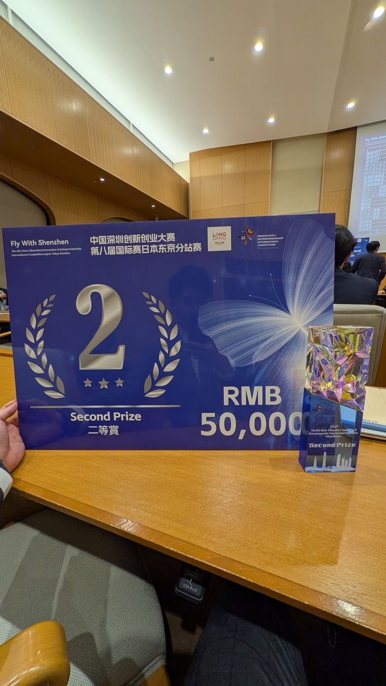 ReGACY Innovation Group株式会社様主催の深センイノベーション・起業ピッチ大会2024 日本大会(10月開催)で、西岡がSecond Prizeに輝き、本戦出場を決めました。11月27日からの深圳市での国際ピッチイベントに参加予定です。中国進出に向けた情報や協業先の調査を実施予定です。