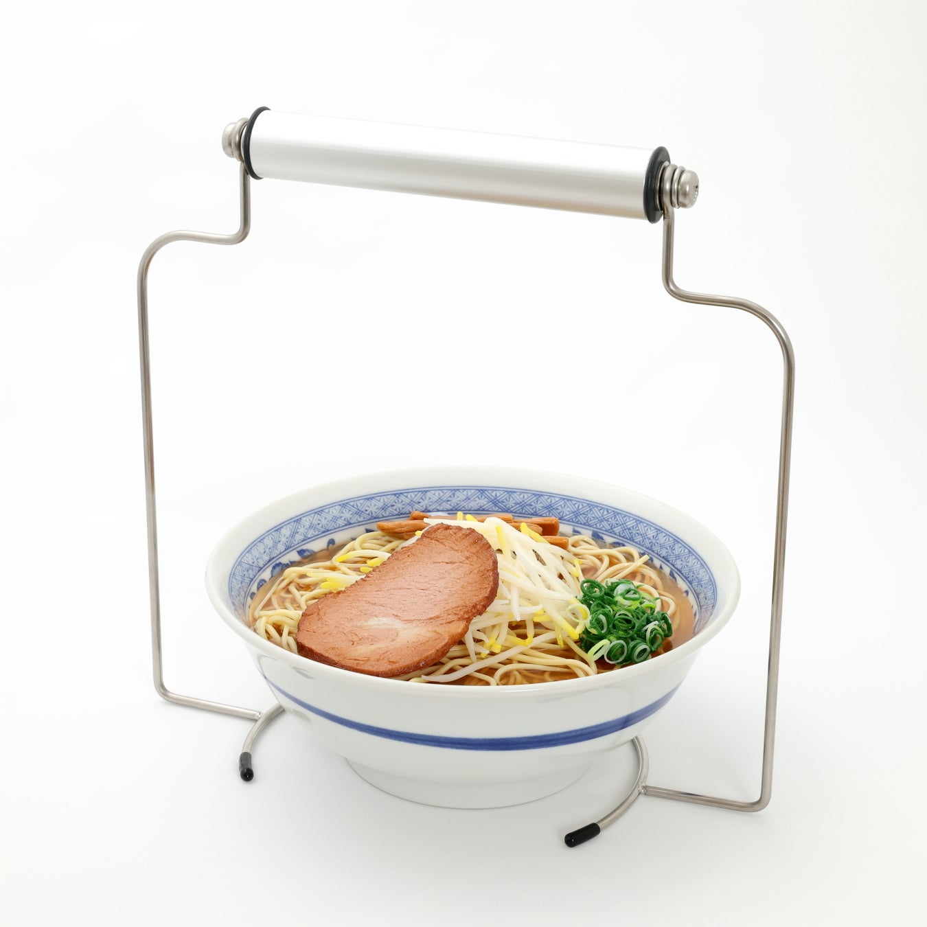 丼キャッチャーは、ラーメン鉢や丼に手が触れずに片手で簡単にすくい上げて運べます。