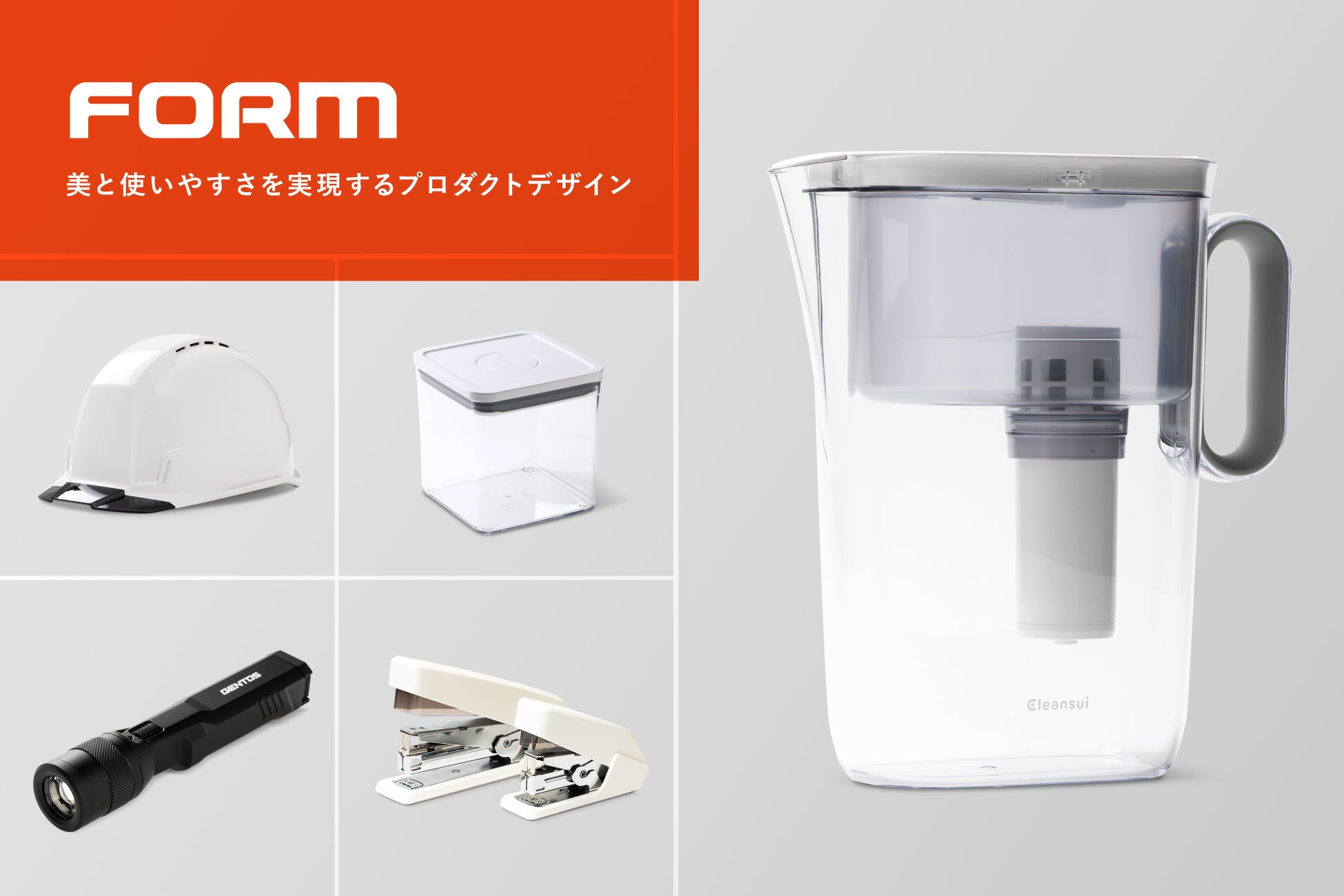 ブースでは、フォルムが手がけたプロダクトの中から、OXO「POP コンテナ」やジェントス株式会社「産業用ヘルメット」などの代表的な開発事例を展示し、それらの製品のコンセプト、スタイリング、設計など、プロダクトデザインのプロセスを試作品と共にご紹介いたします。