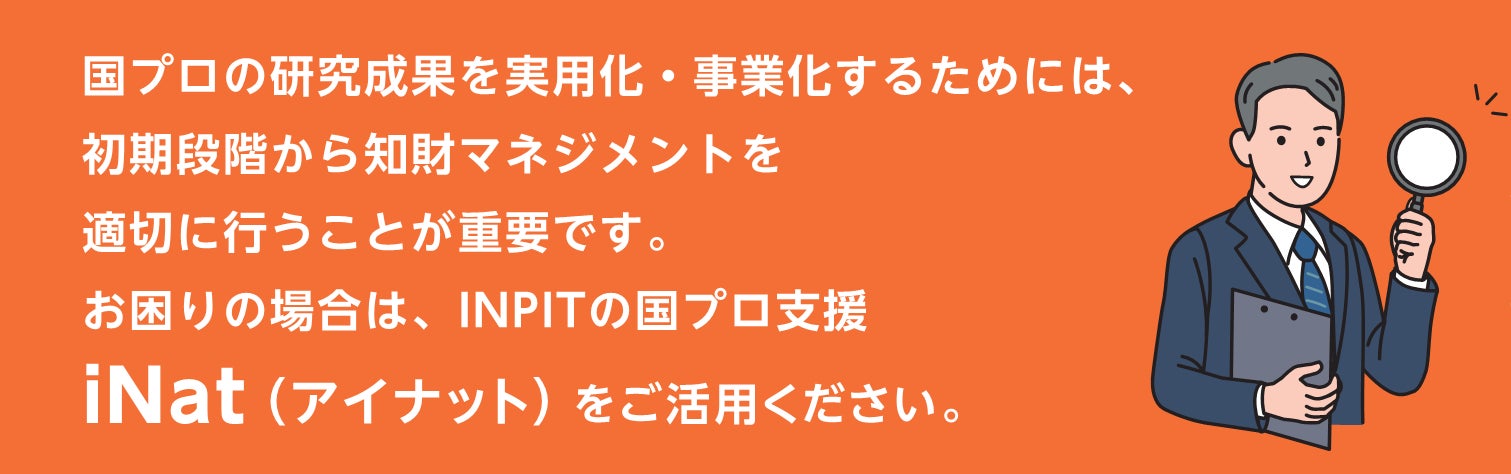 【INPIT】 国プロ向け知財支援(iNat)、ただいま公募中!