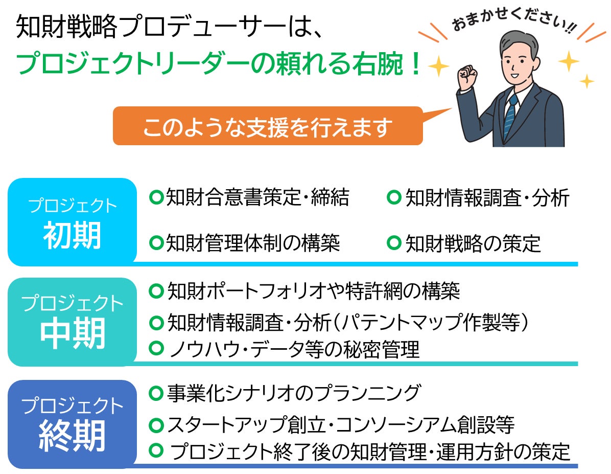 知財に関する専門人材(知財戦略エキスパート)が、無料で支援します。