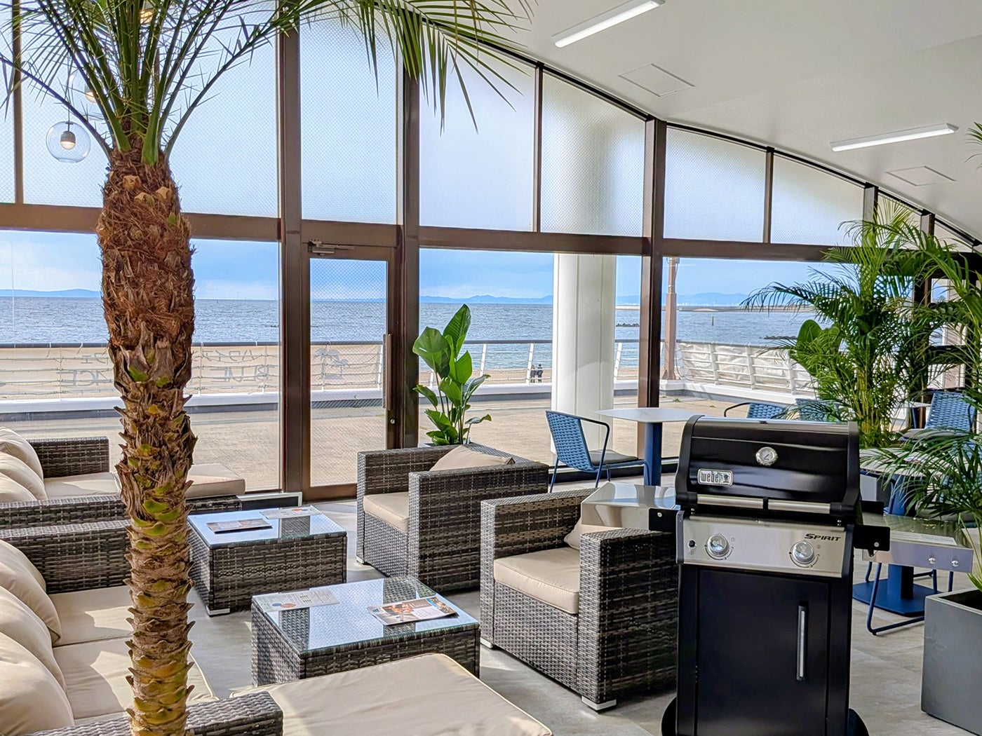牡蠣小屋ブルーテラスは、冬の海を望むロケーションでありながら、完全屋内型店舗のため、寒さや天候に左右されず、ゆったりとお食事をお楽しみいただける牡蠣小屋です。小さなお子様連れのご家族にも安心してご利用いただける点が特長です。