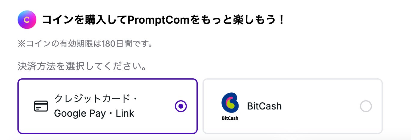 コインは、クレジットカード、Google Pay、Link、BitCashなどで誰でも手軽に購入可能。