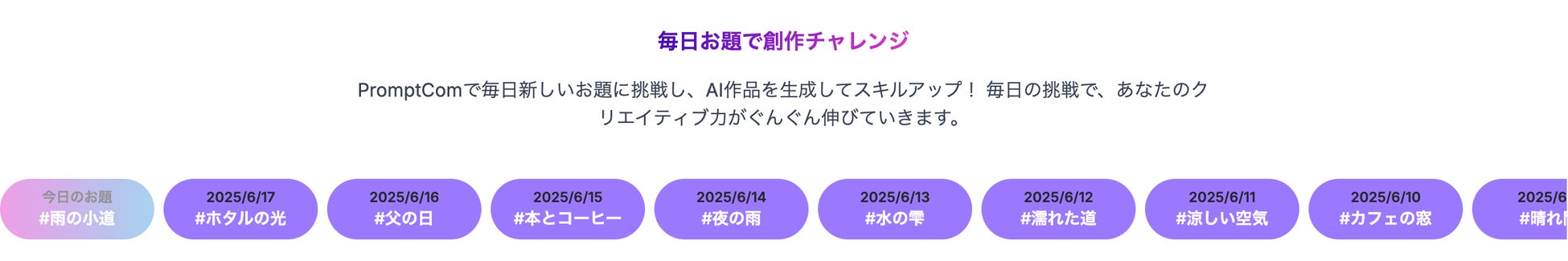PromptComは、「誰もが想像力を発揮し、自由に創作できる世界へ」というビジョンのもと、機能改善とコンテンツ拡充を継続しています。