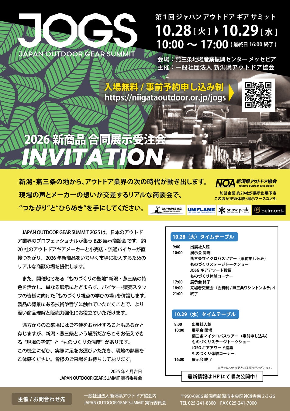 【JAPAN OUTDOOR GEAR SUMMIT 2025】開催と出展お申し込み受付開始のご案内【新潟県アウトドア協会】