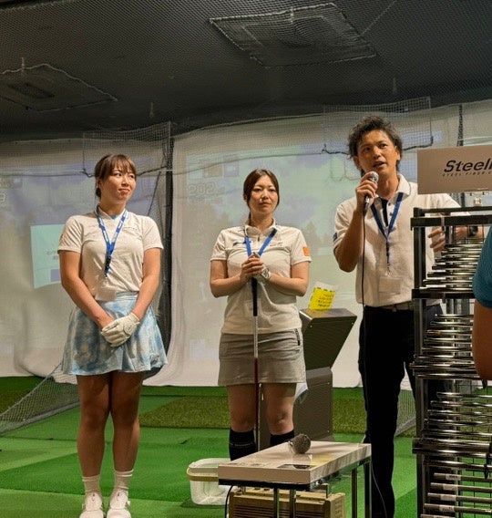 新商品発表会では、PREMIUM GOLF STUDIO(プレミアムゴルフスタジオ)代官山を運営する株式会社PGSの取締役でフィッターの吉田智が登壇し、ゲストの梅田日陽プロと大関香澄プロと共に、今回発表された新商品についての解説を行いました。