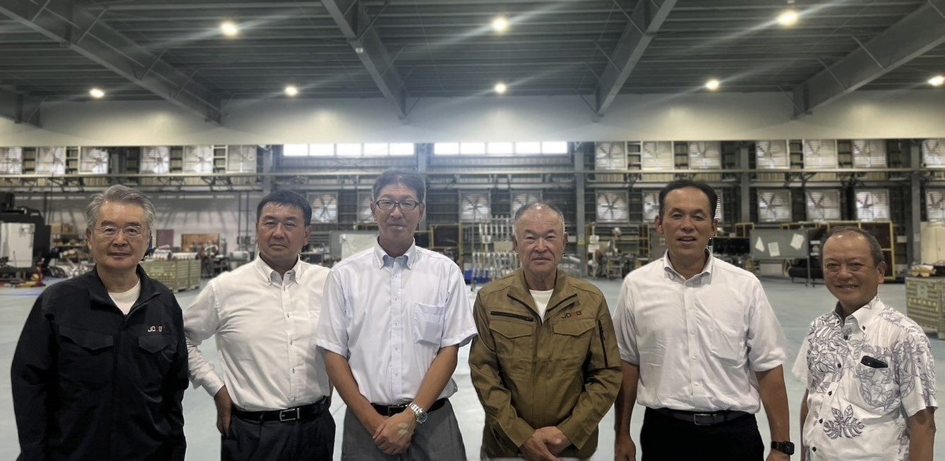 2024年8月7日、株)JOeBテック沖縄本社工場(沖縄県うるま市勝連南風原5194-75)に、株式会社UACJ押出加工(以下、UACJ押出加工)高橋辰己取締役社長、青木透取締役営業本部長、古河産業株式会社(以下、古河産業)三上高弘常務取締役、角谷照男執行役員が来社。日本独自の電動モビリティ生産工場を視察された。