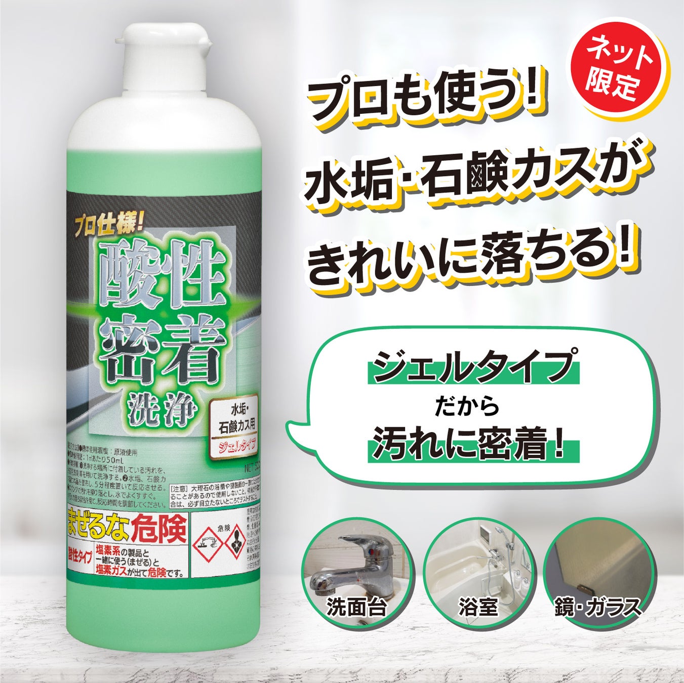 製品名: プロ仕様!酸性密着洗浄 水垢・石鹸カス用