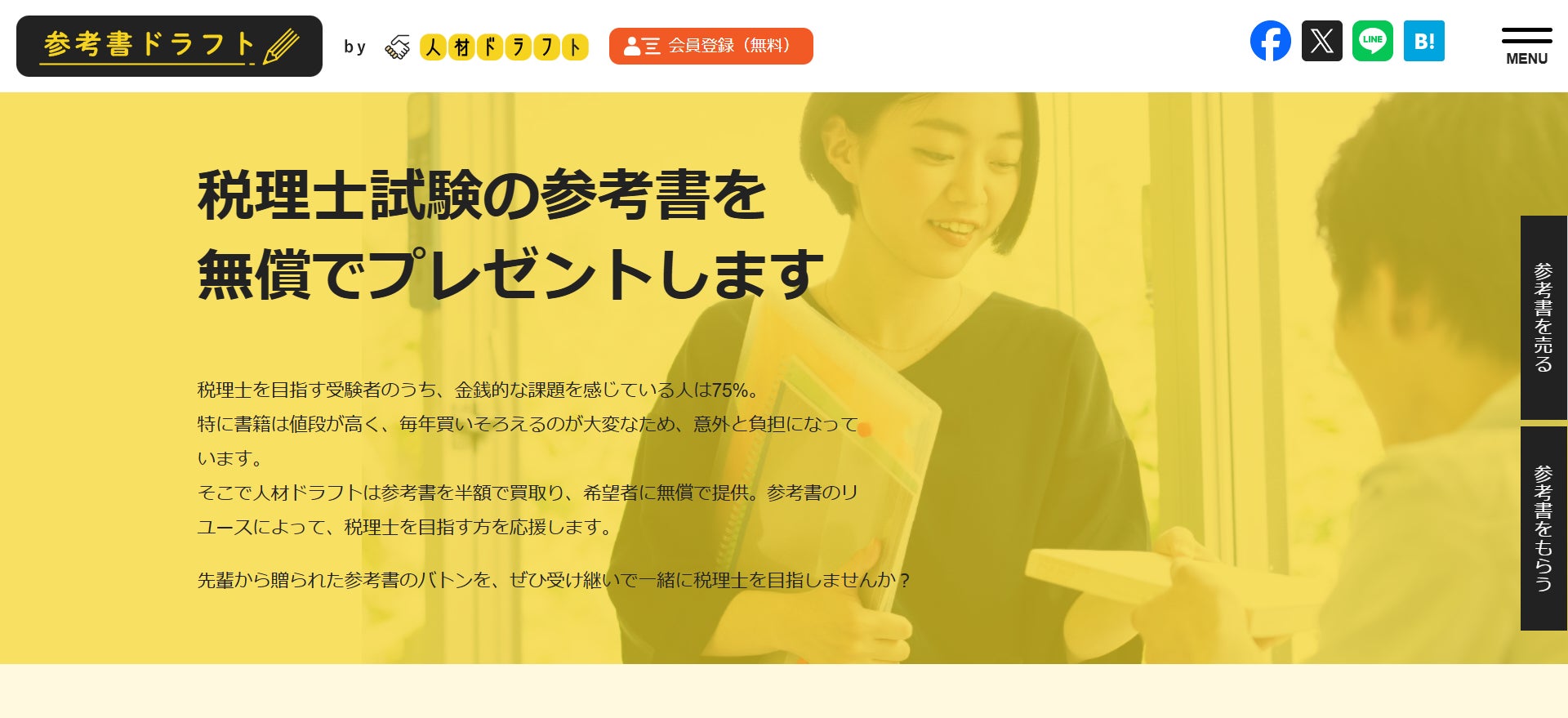 2024/11/29(金)に行われた税理士試験の合格発表を受けて、人材ドラフトでは、日本で初めて税理士の参考書を無料でリユース。希望者に無償プレゼントを開始します。