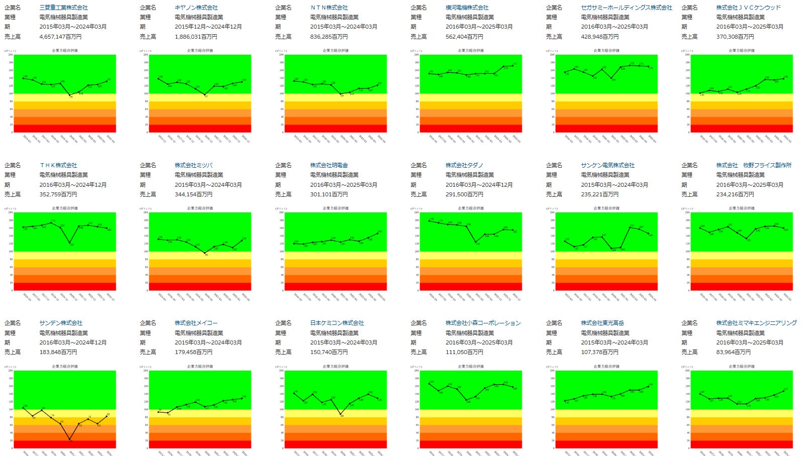 「検索結果一覧」の表形式では認識しづらかった総合的な成長性が一目瞭然です。