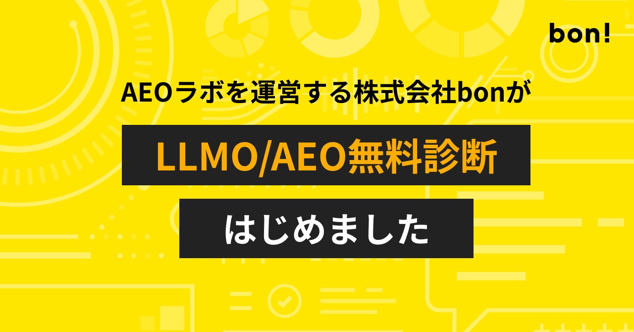 AI検索最適化(LLMO/AEO)およびWeb制作・デジタル戦略を手がける株式会社bon(本社:大阪府大阪市中央区、代表取締役:小川 力也)は、LLMO/AEO対策の必要性と有効施策を診断する「LLMO/AEO無料診断サービス」の提供を開始しました。「自社に必要か分からない」「何から手をつければいいか分からない」「業者からの提案が正しいかわからない」という企業担当者に向けたサービスです。
