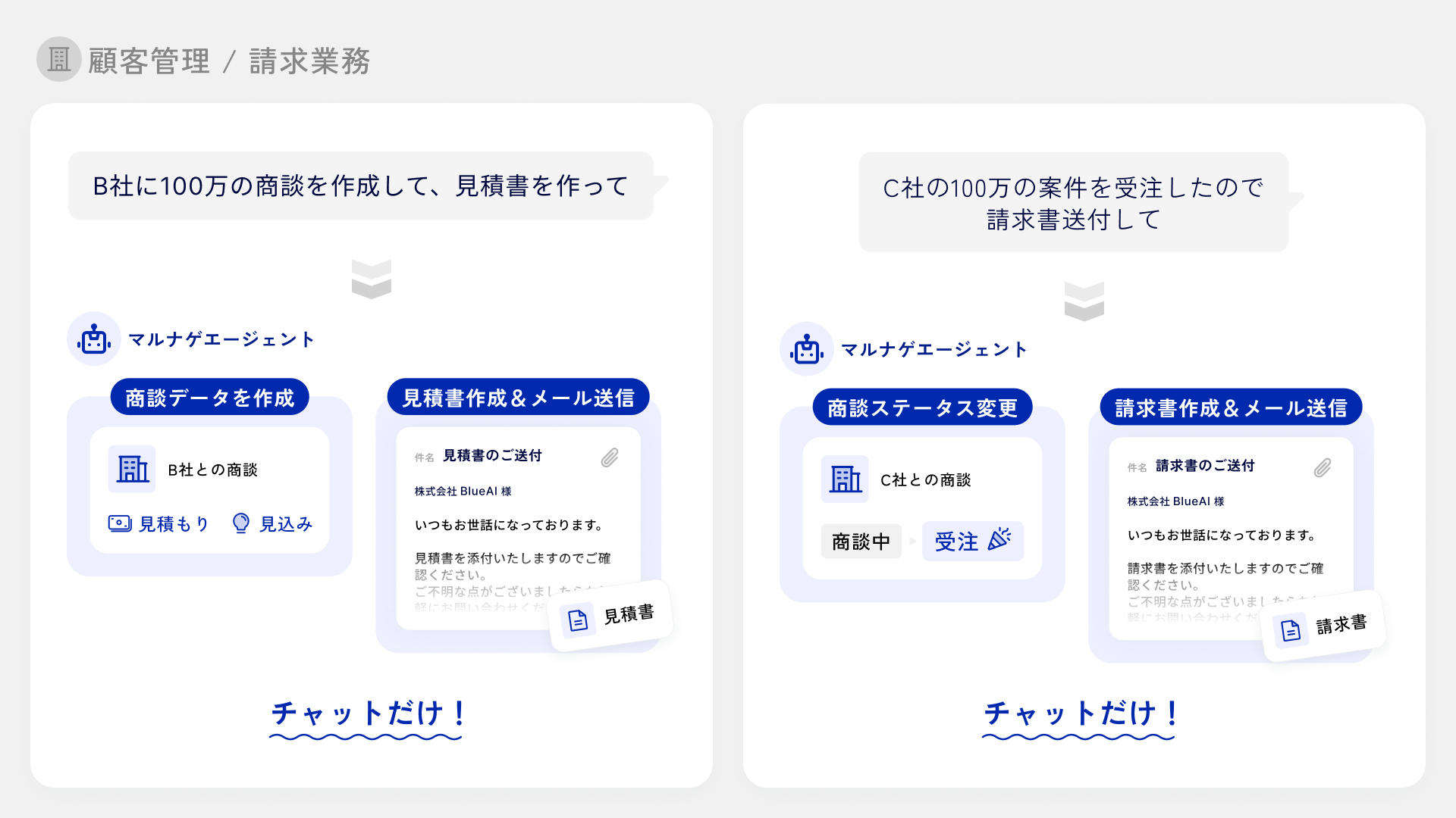 顧客管理業務も「商談作成とお礼メール送信して」とチャットするだけ