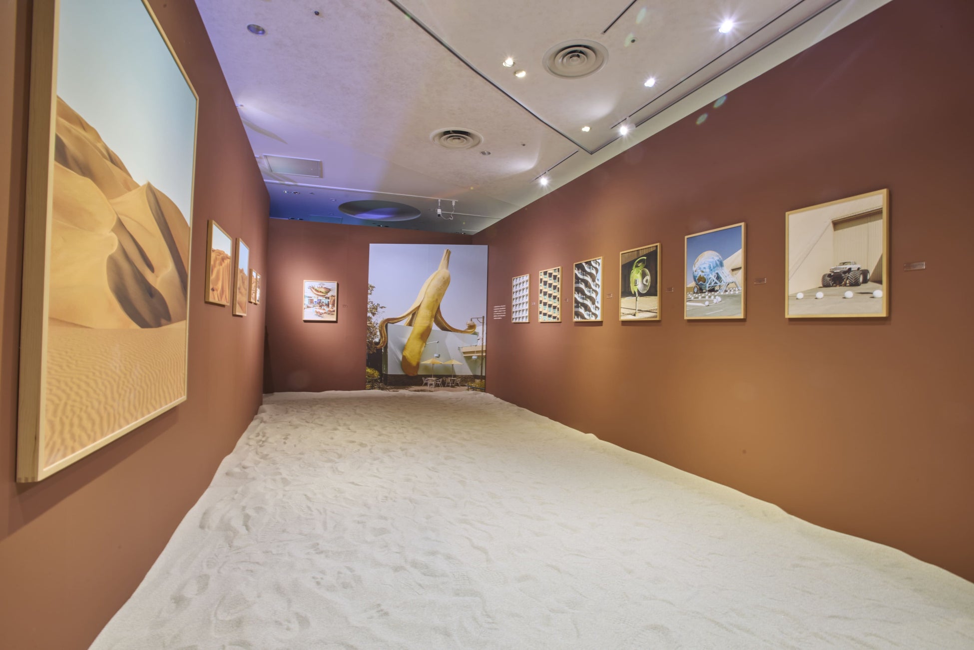 また、展示室に1トンの砂を敷き詰めたドバイのゾーンには、ドバイでの撮影時にYOSIGOが遭遇した過酷な経験も記載されており、本展では随所に記されたエピソードも併せて楽しむことで、作品をより立体的にご覧頂くことができます。