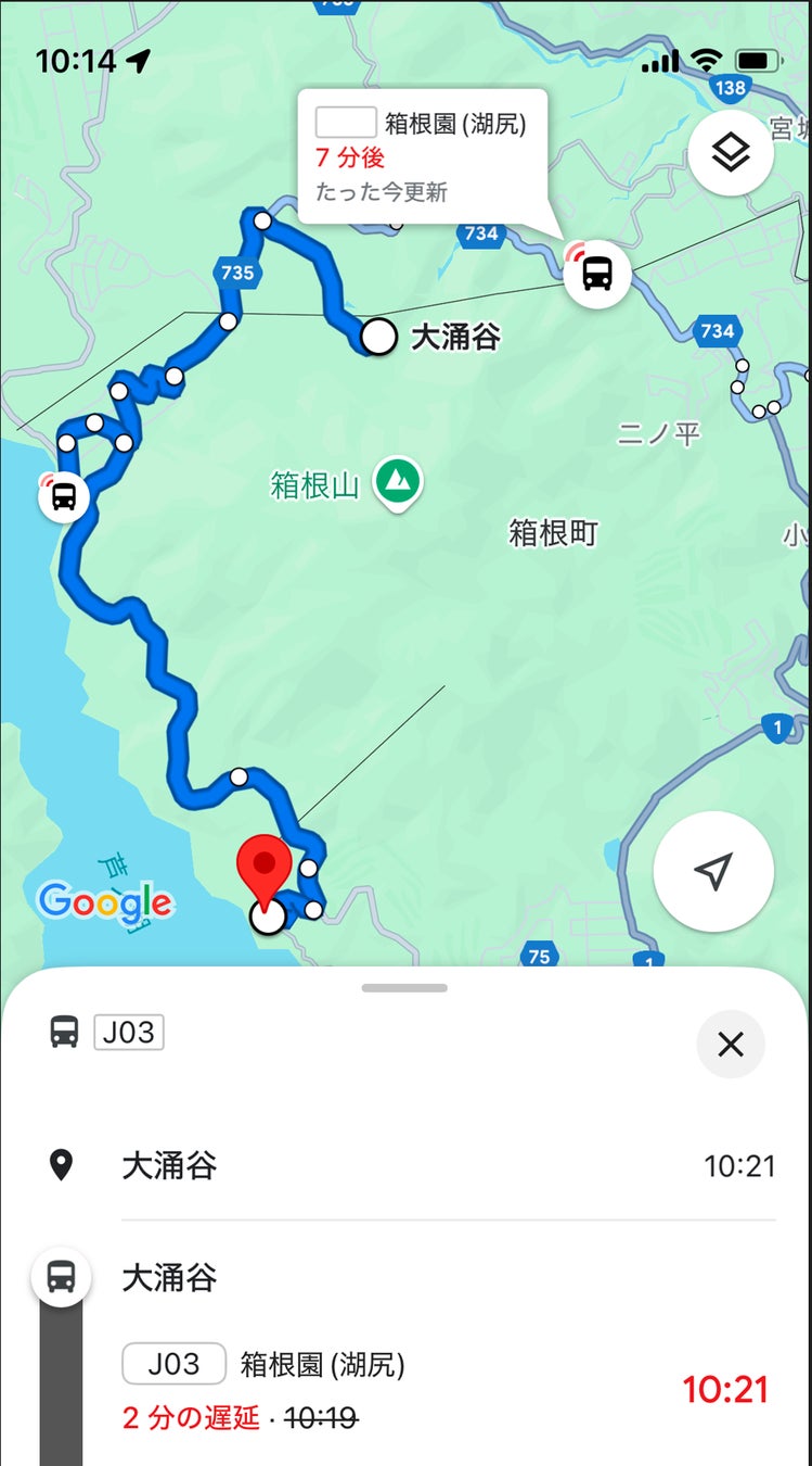 公共交通オープンデータ協議会(会長:坂村 健、東京大学名誉教授)は、公共交通オープンデータセンターより、伊豆箱根バス株式会社(代表取締役:鬼頭 研二)のバスロケーションデータを、GTFS リアルタイム(注1)で公開しました。これによりGoogle マップ上に伊豆箱根バス(図1)のリアルタイム位置情報が経路探索で掲載されるようになりました(図2)。この取り組みによって、Google マップを経路探索の主要な手段とする訪日外国人を含む観光客は、リアルタイムの位置情報を活用した経路探索が可能となり、多様な観光スポットへのアクセスが容易になります。