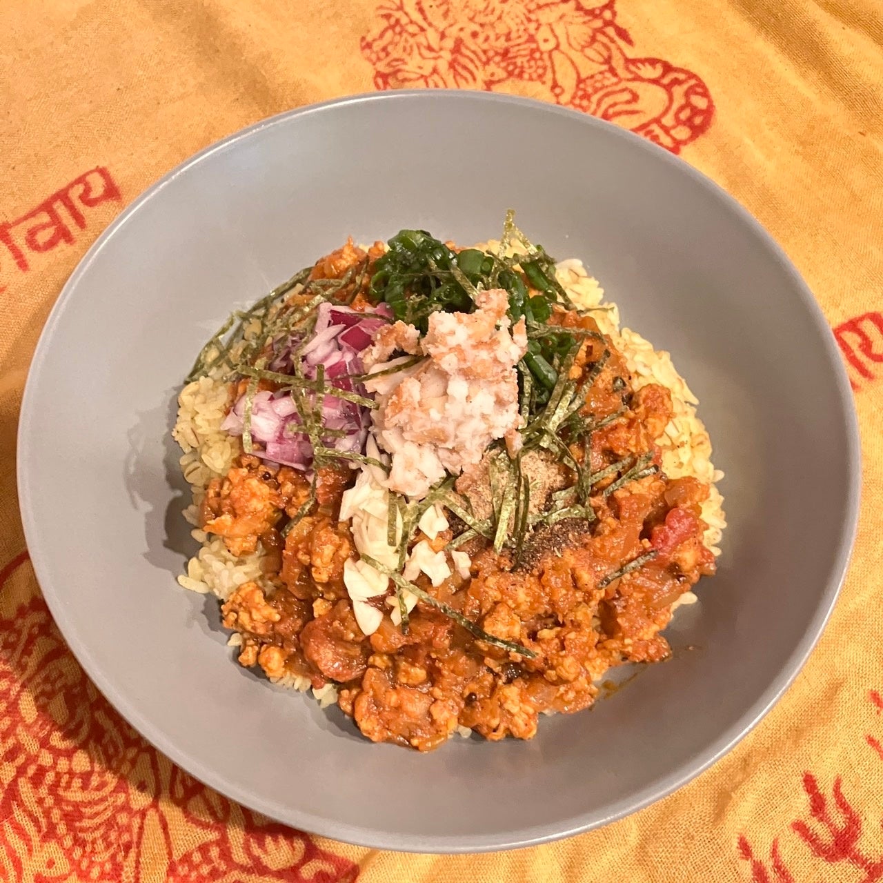 中心に「おにぎり」を配置し、お米を美味しく食べるためのチューニングが施されたカレーは、まさに東北カレー界のアイコニックな存在。