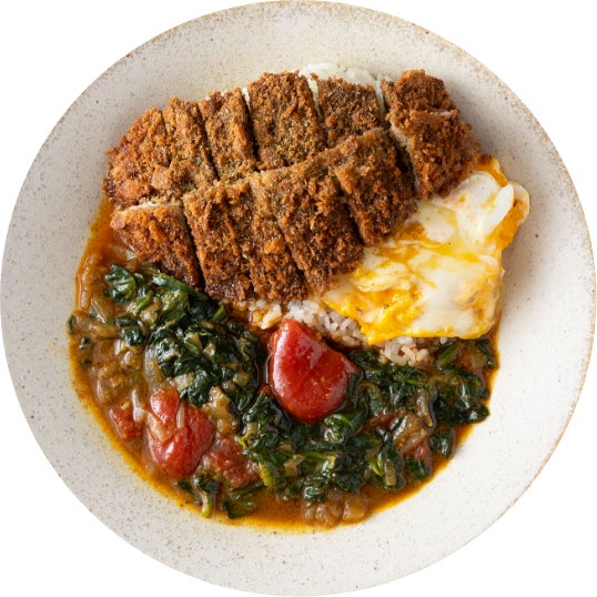 “スパイス&ベジタブル” がコンセプト。従来のカツカレーのイメージを一新する『ネオ・カツカレー』はオリジナルハーブスパイスに漬け込んだ「神威豚」ロースを自家製生パン粉でカラッと揚げた絶品のカツと、夢民の定番「ポパイカレー」の具材をあしらったW主演が拮抗する夢の一皿。