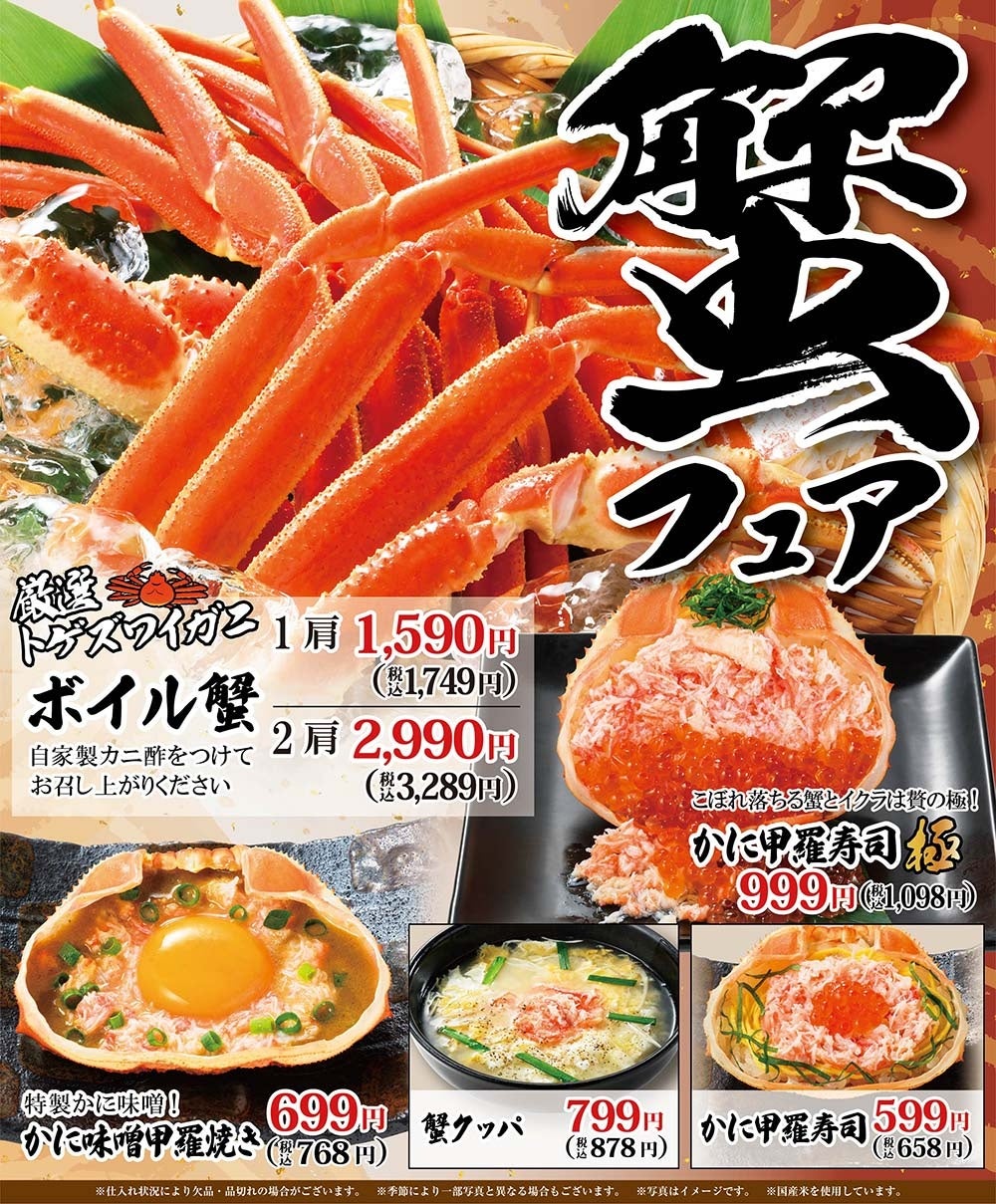 海鮮大好き 地域のお客様が熱望する海鮮の王様「蟹」を堪能できる「蟹食べ放題」を