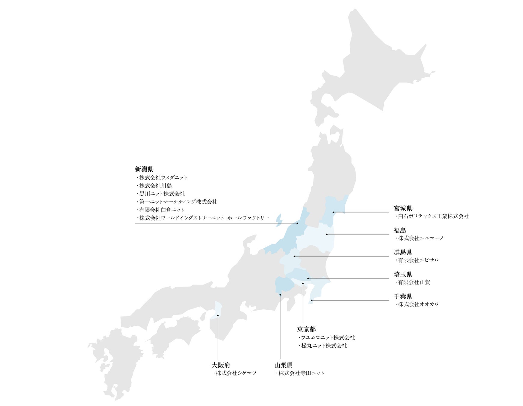 CFCLでは、重要なコミュニティであるニット産地への貢献と地域経済の活性化を通じて、ニット産地の持続可能性を確保し、次世代へと繋げることを目指しています。具体的な取り組みとして、主要な取引先であるニット生産工場の情報を開示します。(図5)