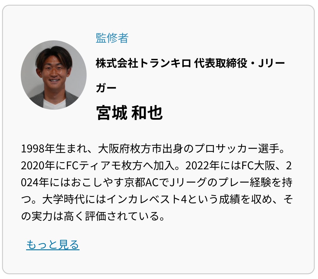 株式会社トランキロ代表取締役、兼プロサッカー選手の宮城 和也氏が新たに記事監修者として就任。監修するジャンルは「転職」。
