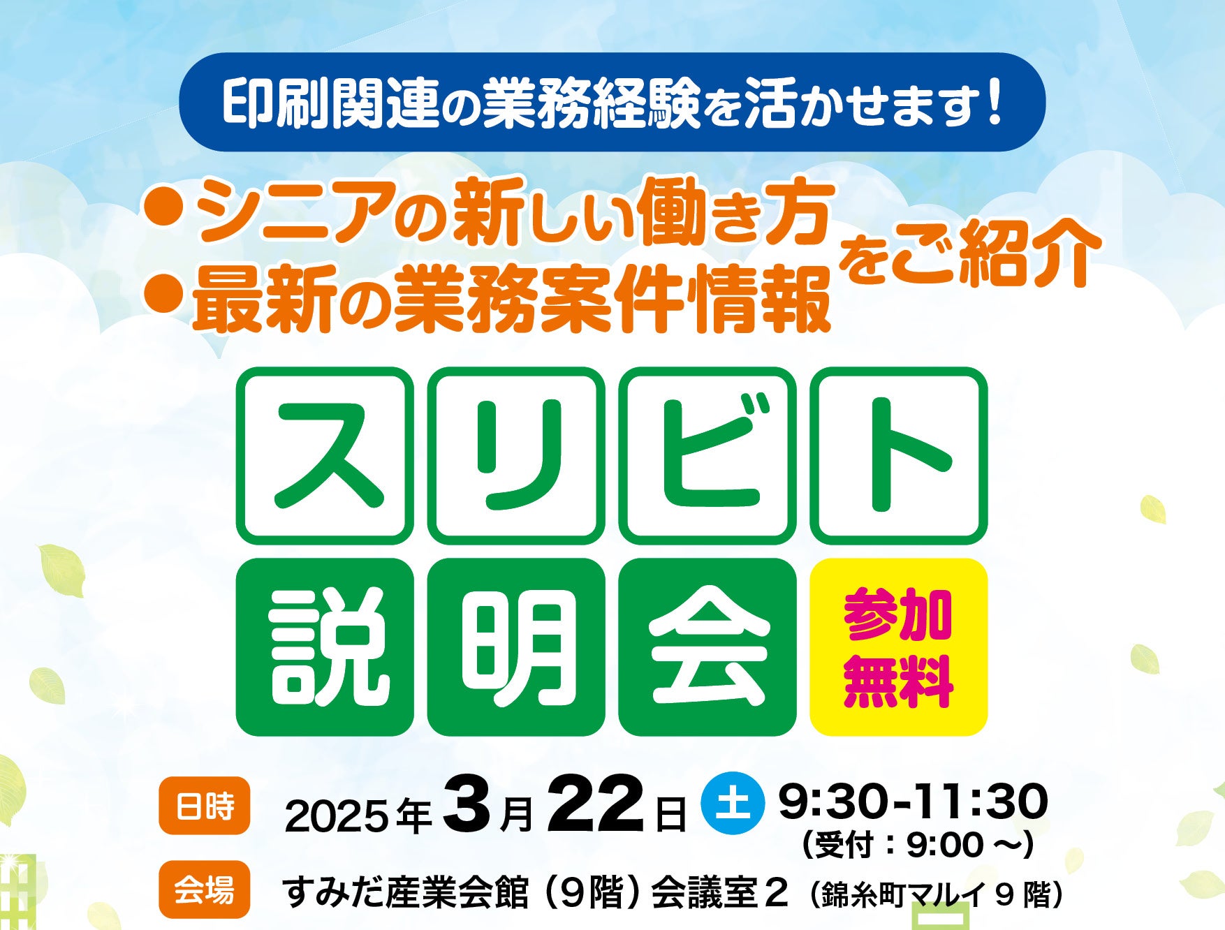 印刷業界の8割の経営者が人材不足を経営課題としてあげている中、経験豊富なシニアがその解決策として注目されています。印刷業界のシニア層向けに【”印刷業界のシニアの新しい働き方”説明会】を開催します。