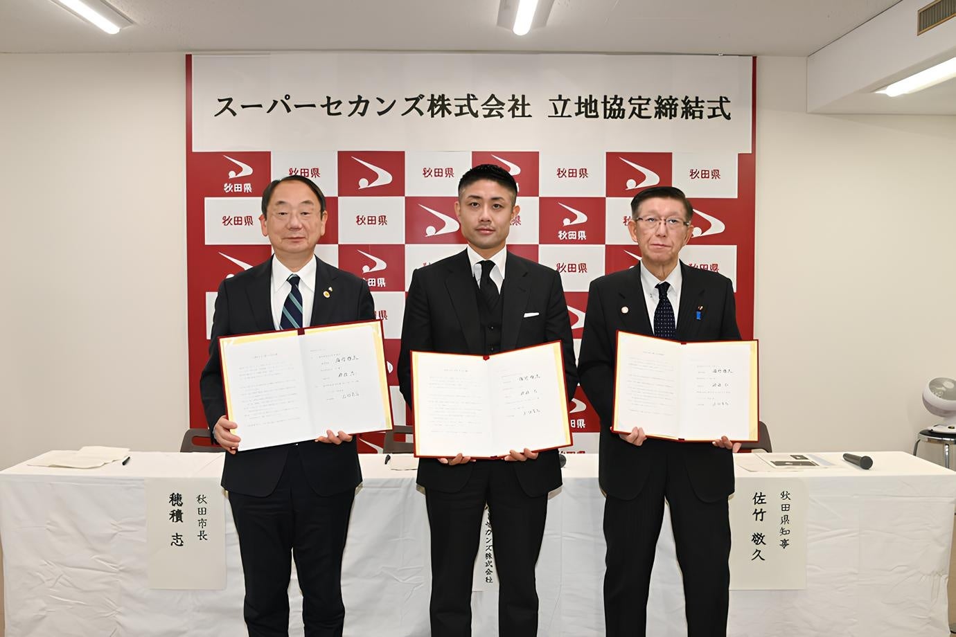 スーパーセカンズ株式会社、秋田県および秋田市と立地協定を締結