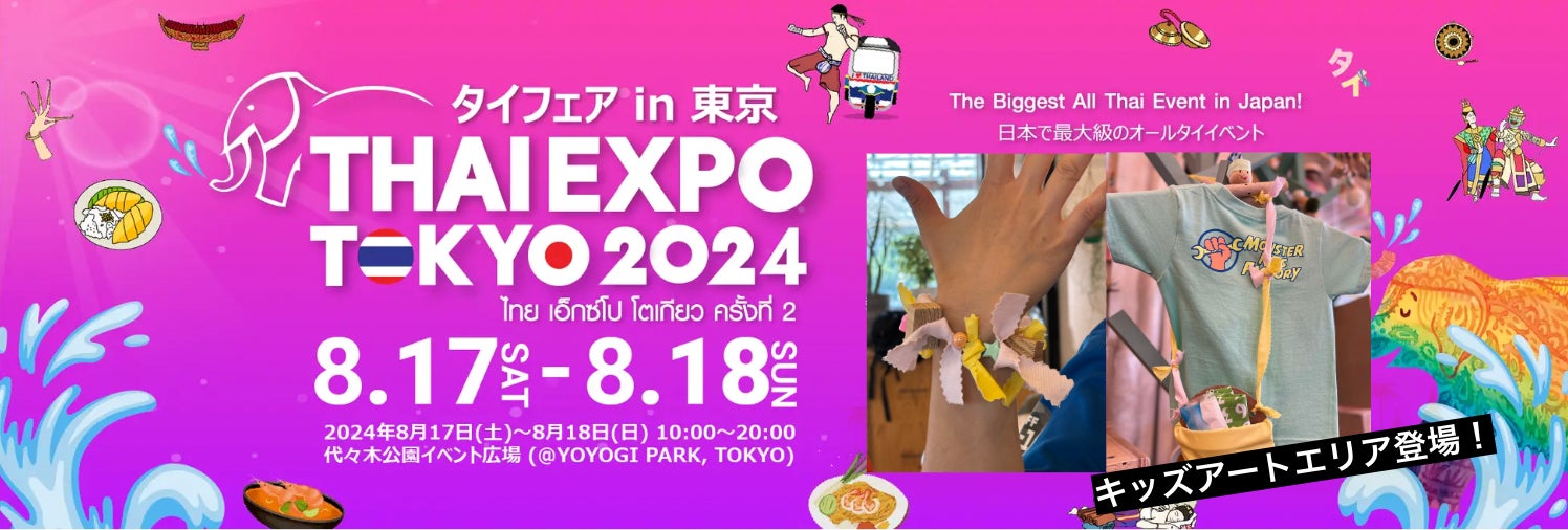 今週末の2024年8月17日(土)8月18日(日)、代々木公園にて開催する日本最大級のタイポップカルチャーイベント「タイフェアin東京~THAI EXPO TOKYO 2024(タイエキスポ)」に、タイの文化に触れながら遊べる体験型SDGsテント「Art Tent-キッズアート-」が出現します。