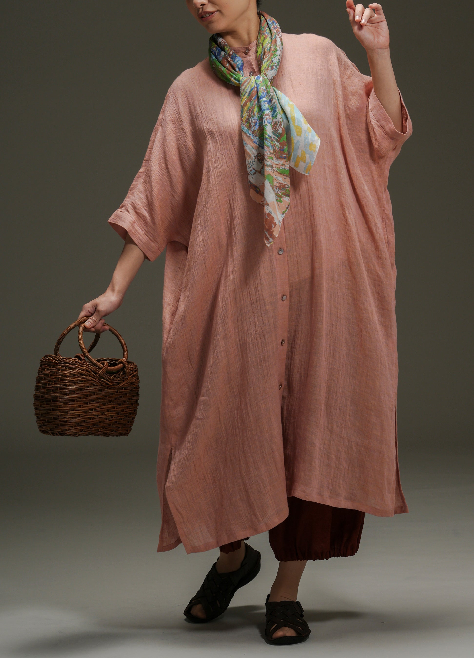 一枚でワンピースとしてはもちろん、細身のパンツやスカートを合わせたレイヤードスタイルもおすすめ。肌の露出を抑えつつ、涼やかさを保つ大人のための一着です。