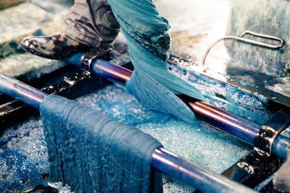 職人が糸から染め上げる、奥行きのある藍の濃淡