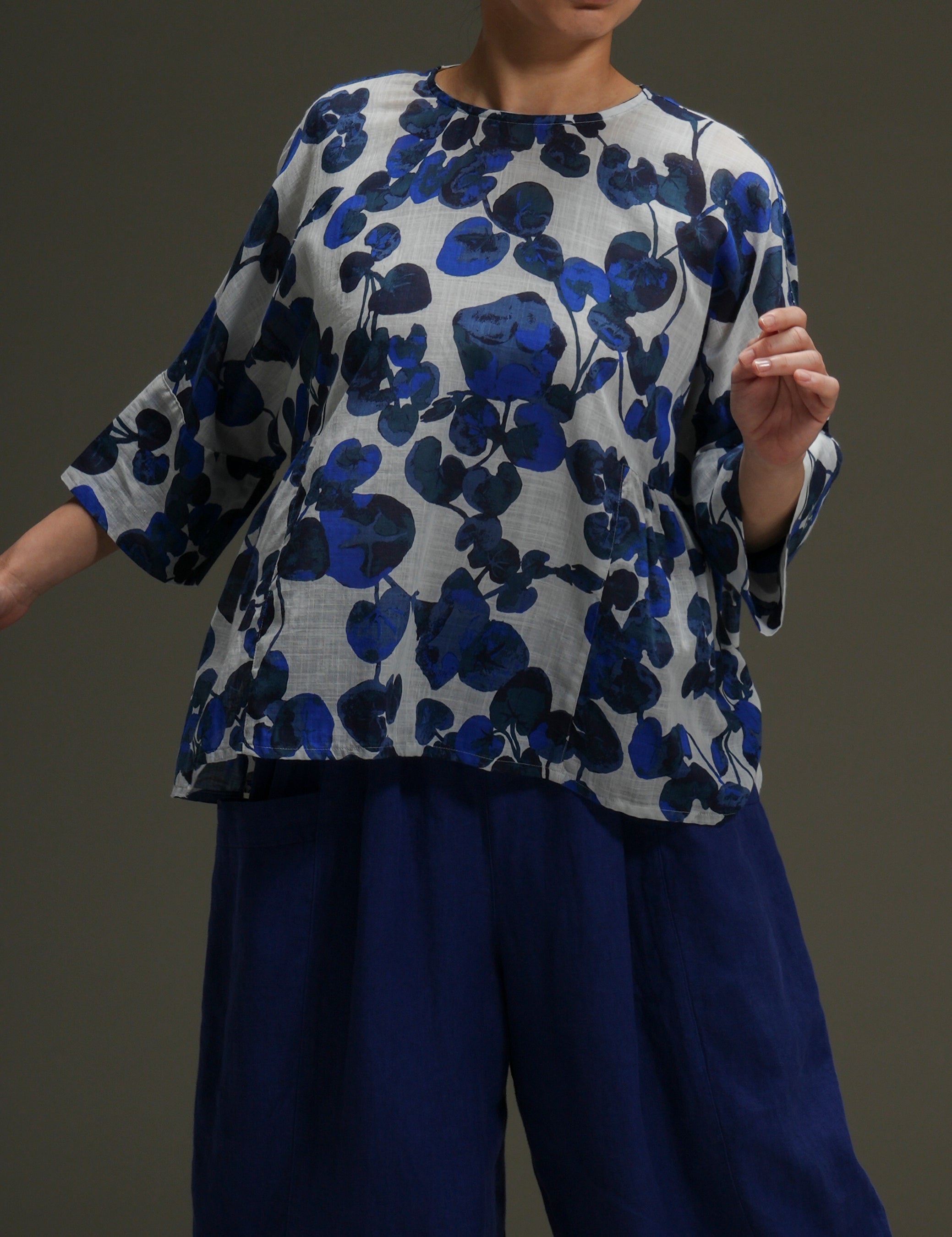 たっぷりとしたギャザーが体のラインを拾わないのもポイント。体を風が吹き抜けていくような爽やかな着心地と華やぎを両立させました。使い込むほどにやわらかく肌になじみ、手放せなくなる一枚です。