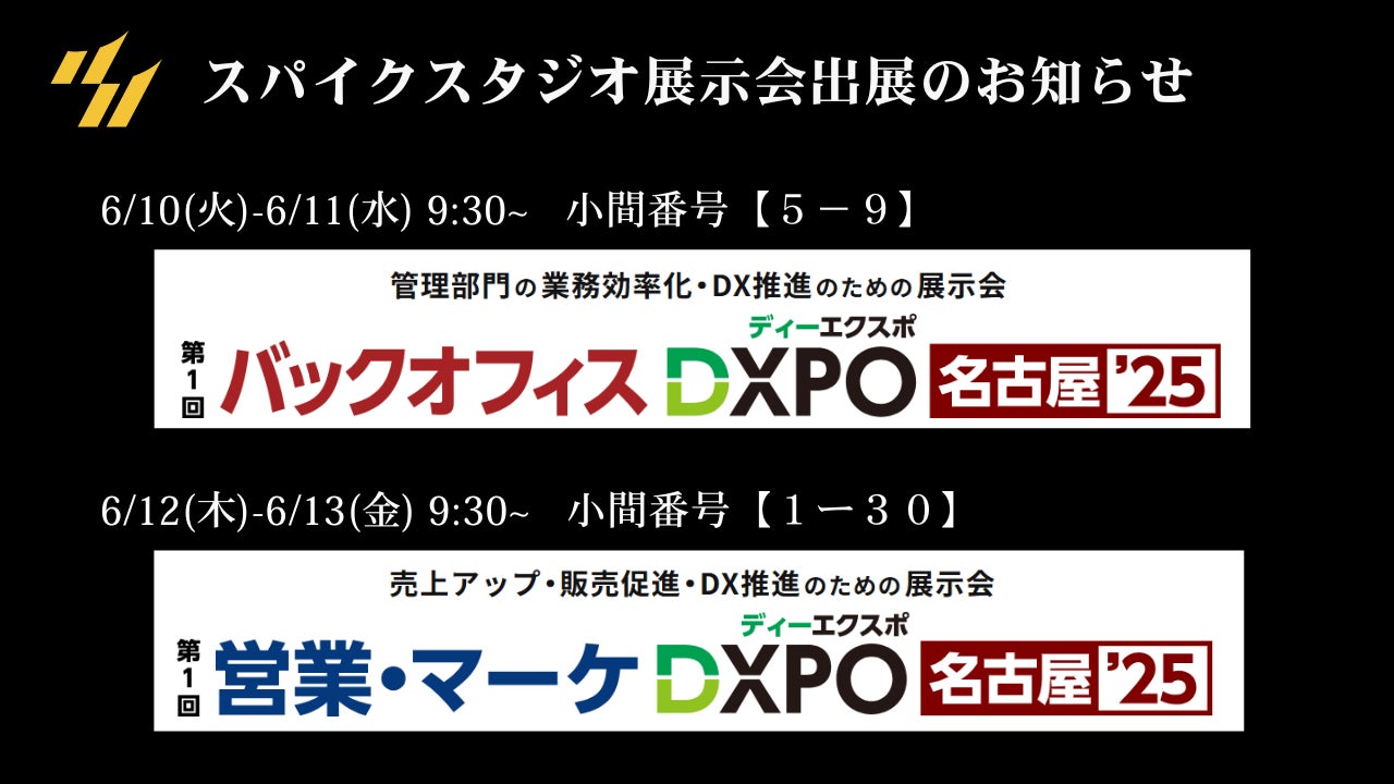 【展示会出展のお知らせ】スパイクスタジオ、6月開催「DXPO名古屋’25」に2展同時出展!