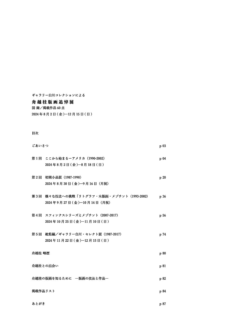 彫刻で知られる舟越桂が、版画でどのような作品を残したか、舟越桂の卓越したデッサン力から生み出される版画の世界を多くの方に知っていただきたいとの思いから、半年間にわたる展覧会にて展示された全60点の版画作品を掲載。