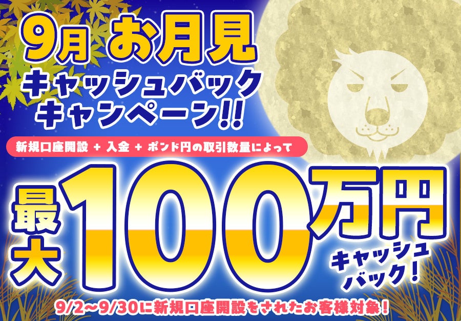 【新規口座開設限定】9月お月見最大100万円キャッシュバックキャンペーン!を実施
