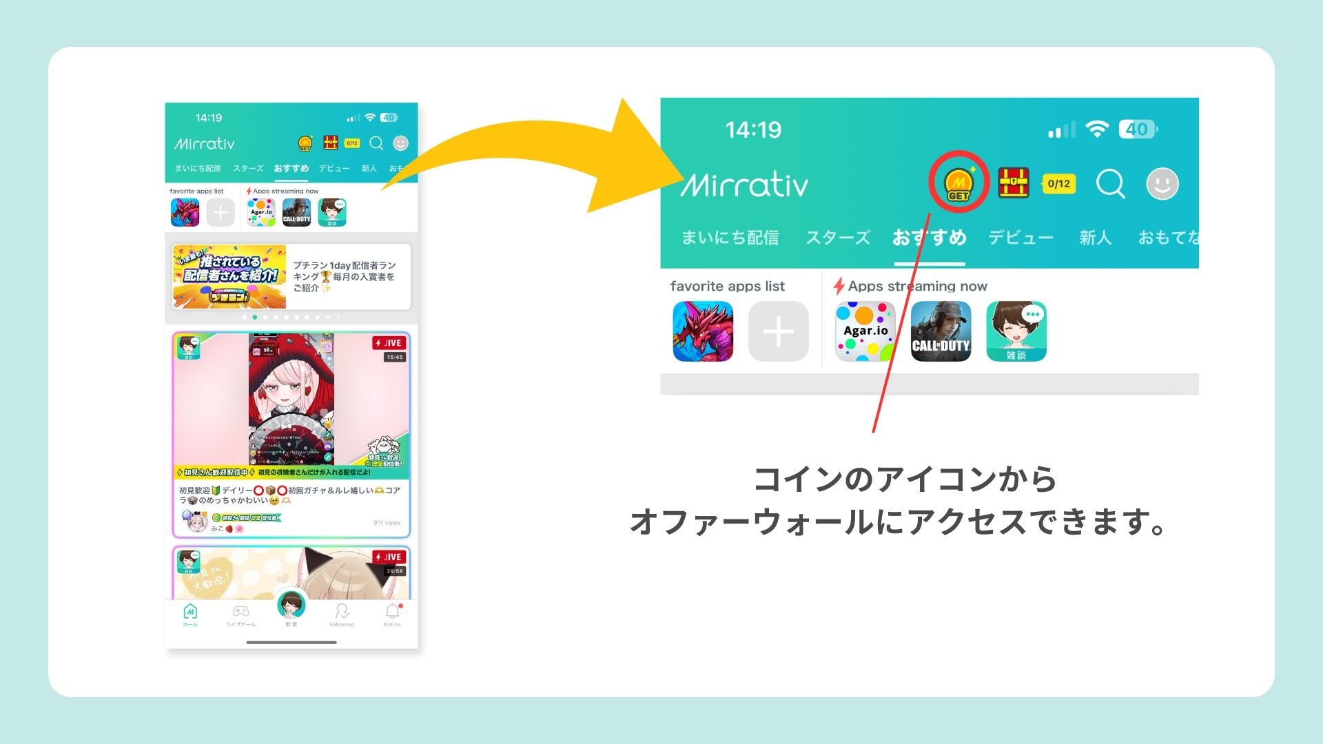 MyChipsのオファーウォールを活用することで、Mirrativユーザーは特定の条件を達成することでコインを獲得できるようになります。