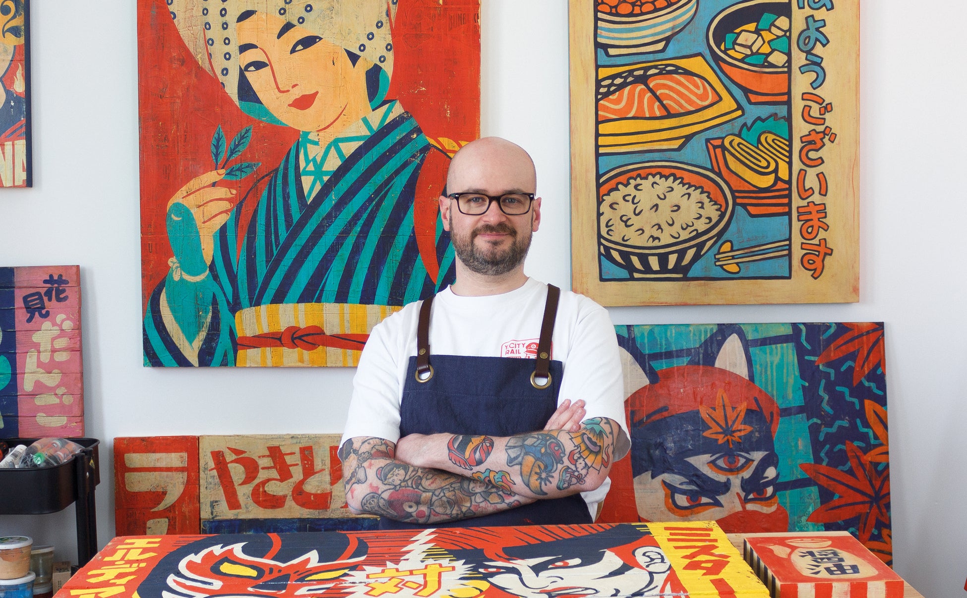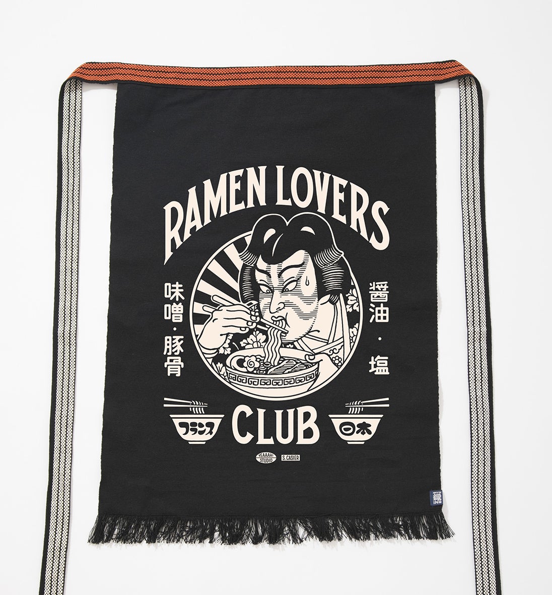② 2012年初めて日本に来たステファンはラーメンの大ファンになりました。当時のフランスではおいしいラーメンに出会う事はできず、日本にいる間にたくさんのラーメンを試食して、彼の大好きな日本食の一つになりました。これからはラーメンの前掛けをして大好きなラーメンをつくるのを楽しみにしています。