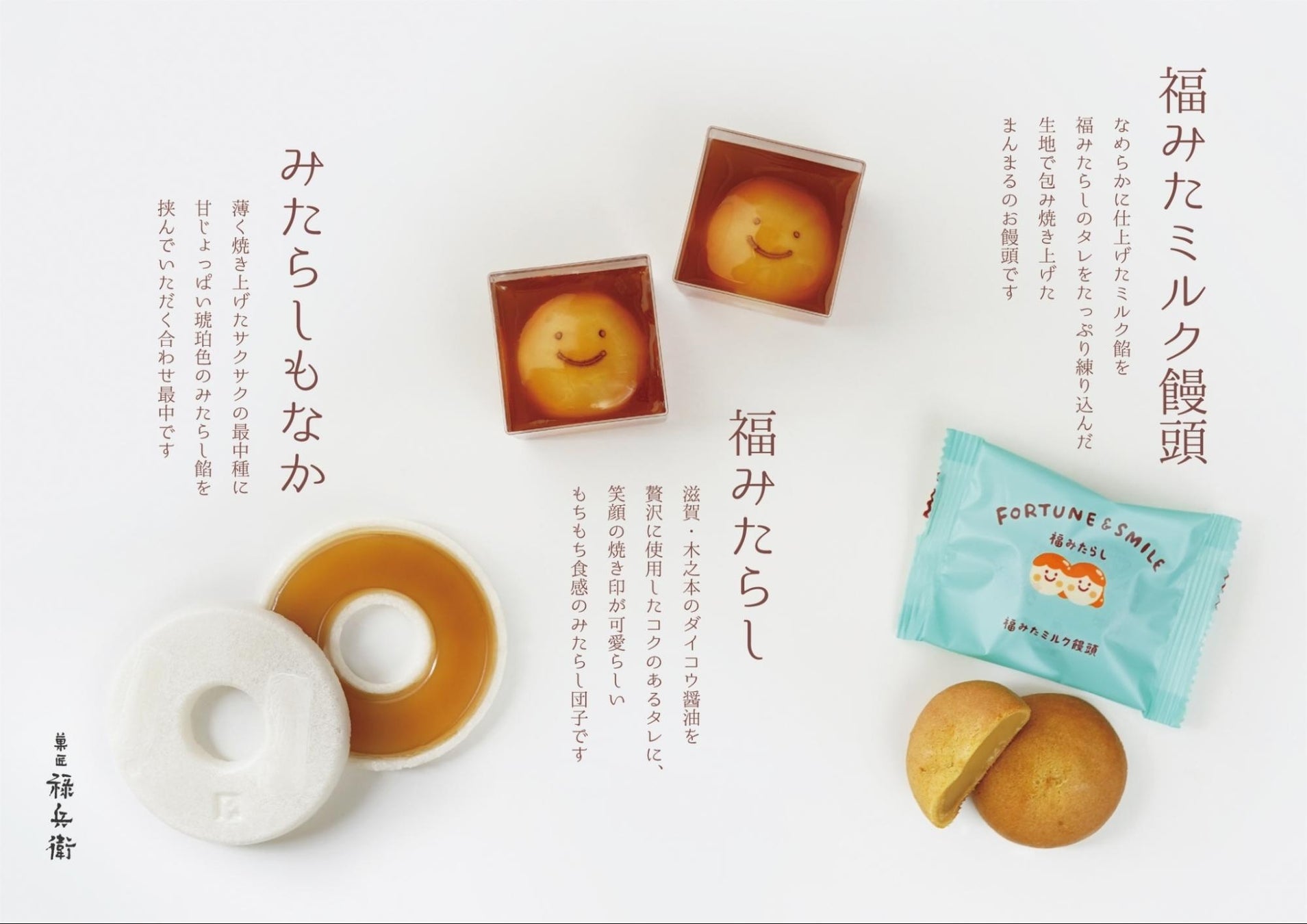 滋賀県長浜市に拠点を置き、素材の選定から製造までこだわり抜いた和菓子を提供する1926年(大正15年)創業の老舗和菓子ブランドです。伝統を現代風にアレンジした和菓子が人気で、看板商品「福みたらし」は、滋賀産米粉のもちもち団子に老舗「ダイコウ醤油」の甘辛いタレが絡んだ逸品です。焼印のにっこり笑顔が特徴で、冷やしても美味しく召し上がれます。