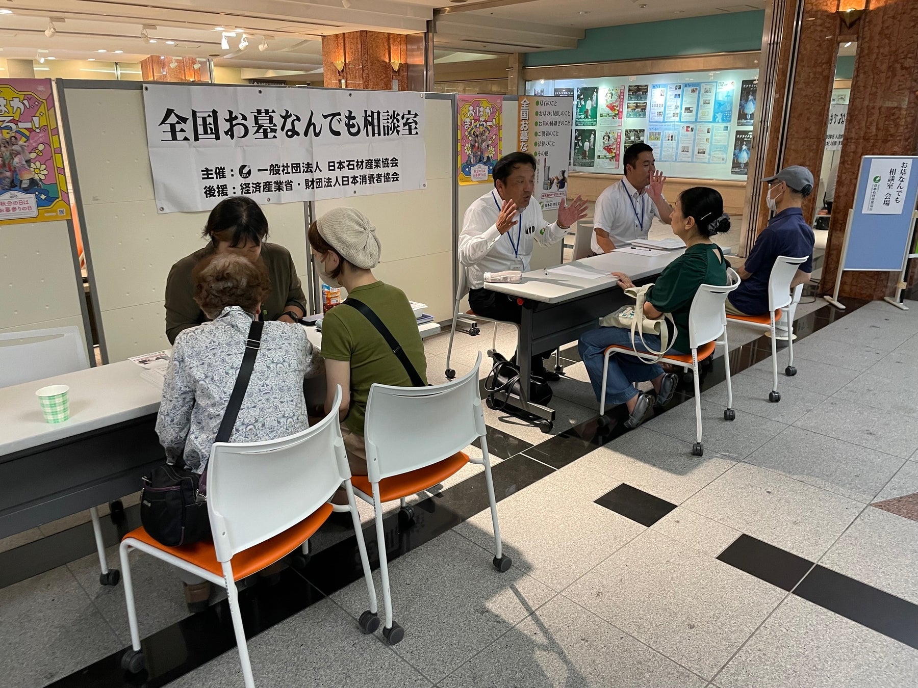 一般消費者の「お墓」に関する悩みや相談にお応えすることを目的に、石産協では2008年より、全国各地にて対面で実施しているほか、お墓相談ダイヤルを設け、お電話での相談にも対応しています。相談者への対応は石産協が認定する「お墓ディレクター資格取得者」があたっており、お墓に関する幅広い相談に無料で対応しています。