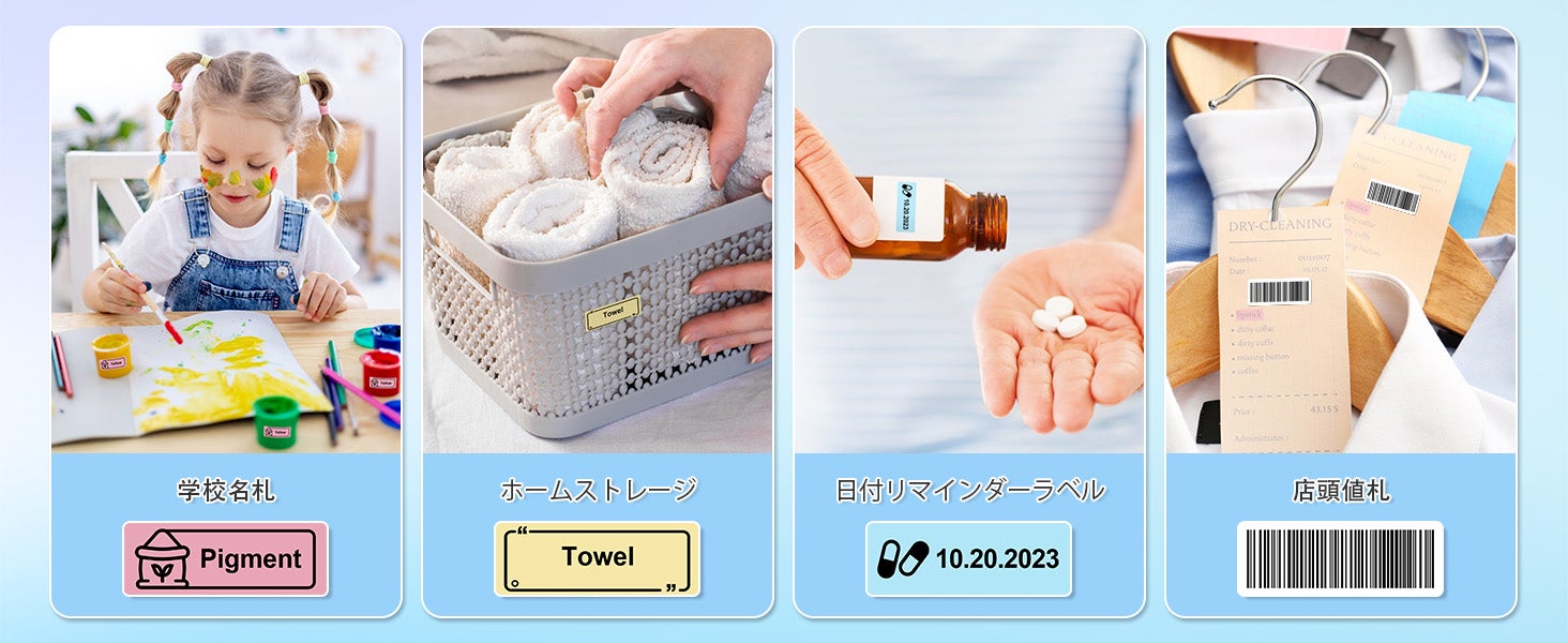 服や商品に価格やバーコードを付けるラベルを作るのに最適です。特に店舗での在庫管理や価格表示に便利で、業務効率が向上します。