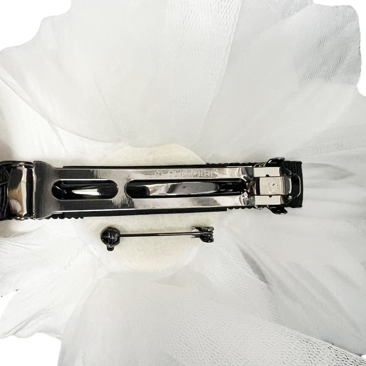 裏面にはバレッタ金具とブローチピンの両方を備え、