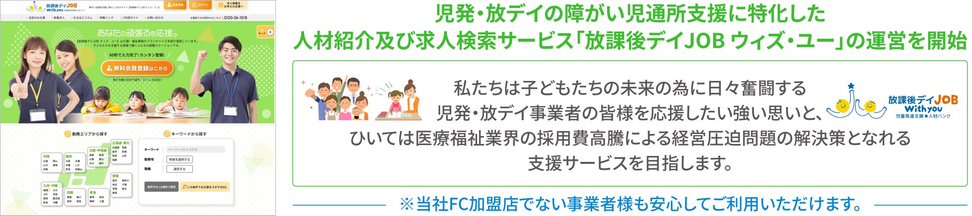 「放課後デイJOB ウィズ・ユー」障がい児通所支援特化型の人材紹介及び求人検索サービス