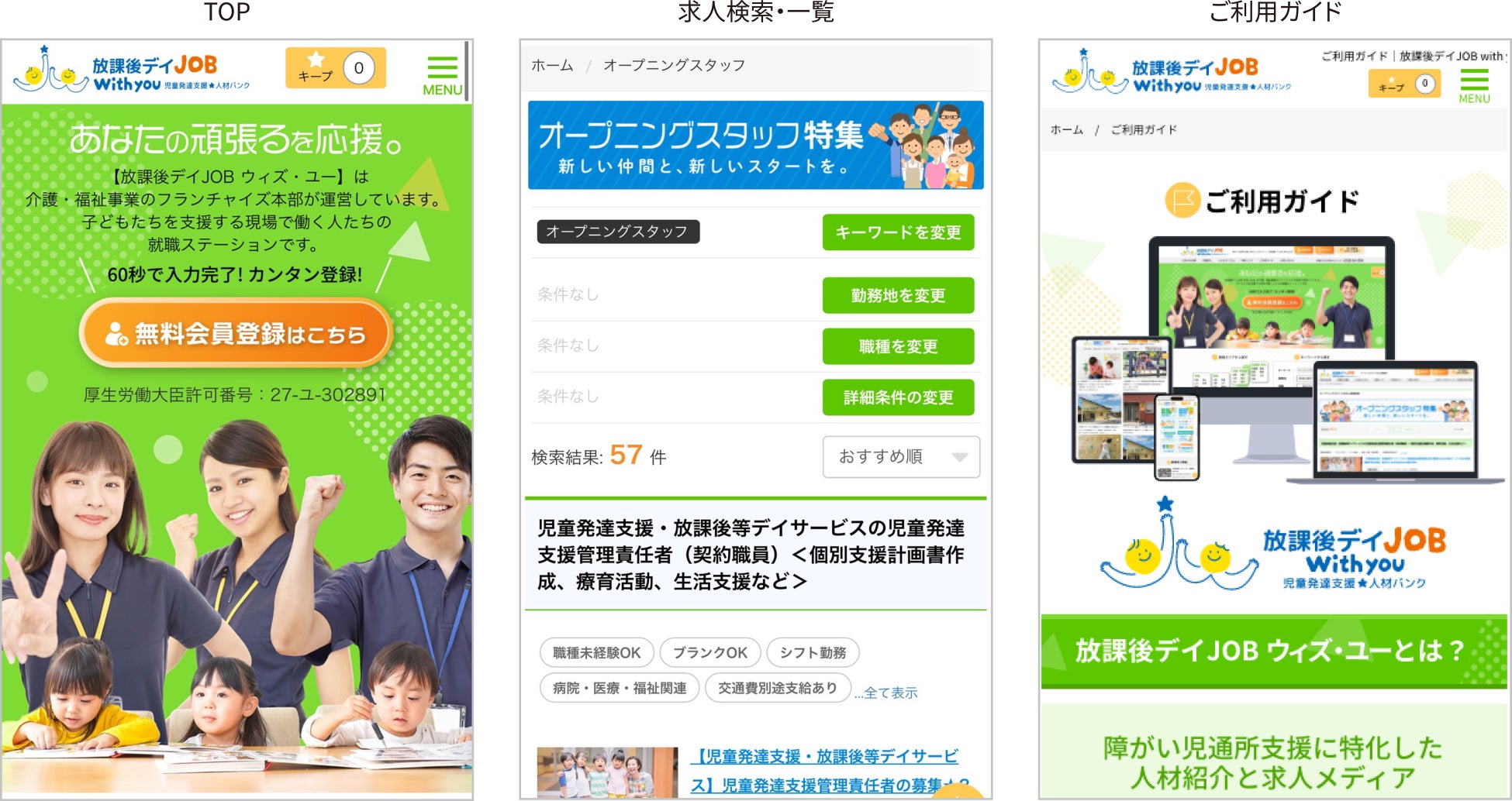 「放課後デイJOB ウィズ・ユー」は、当社が展開するFC加盟店の採用活動にも貢献。